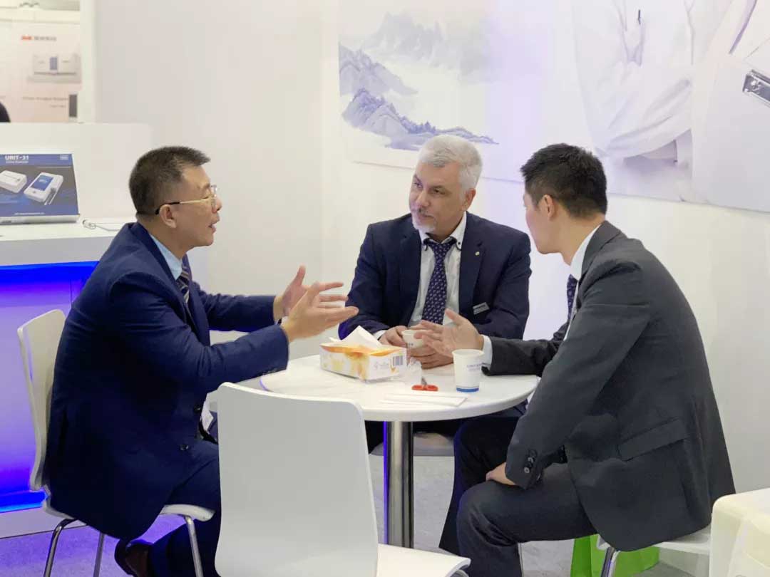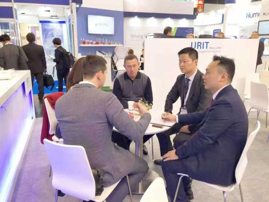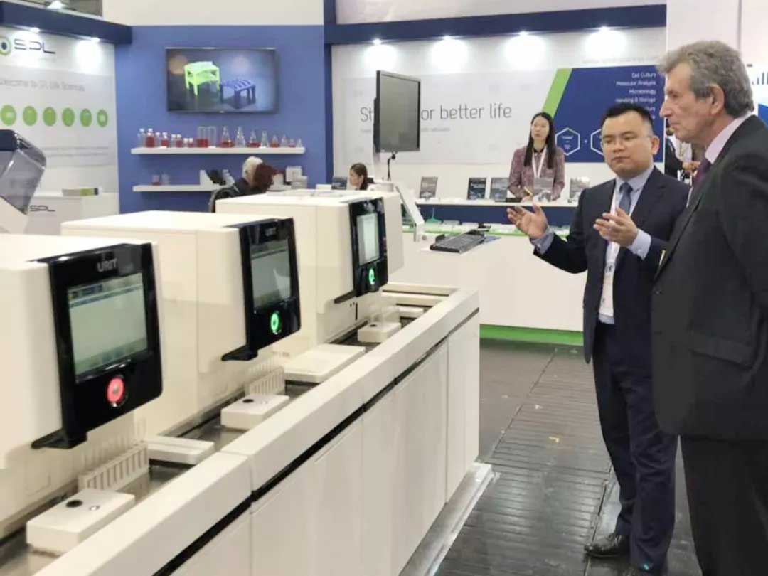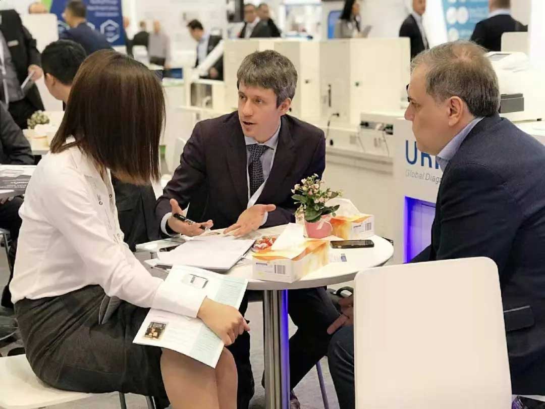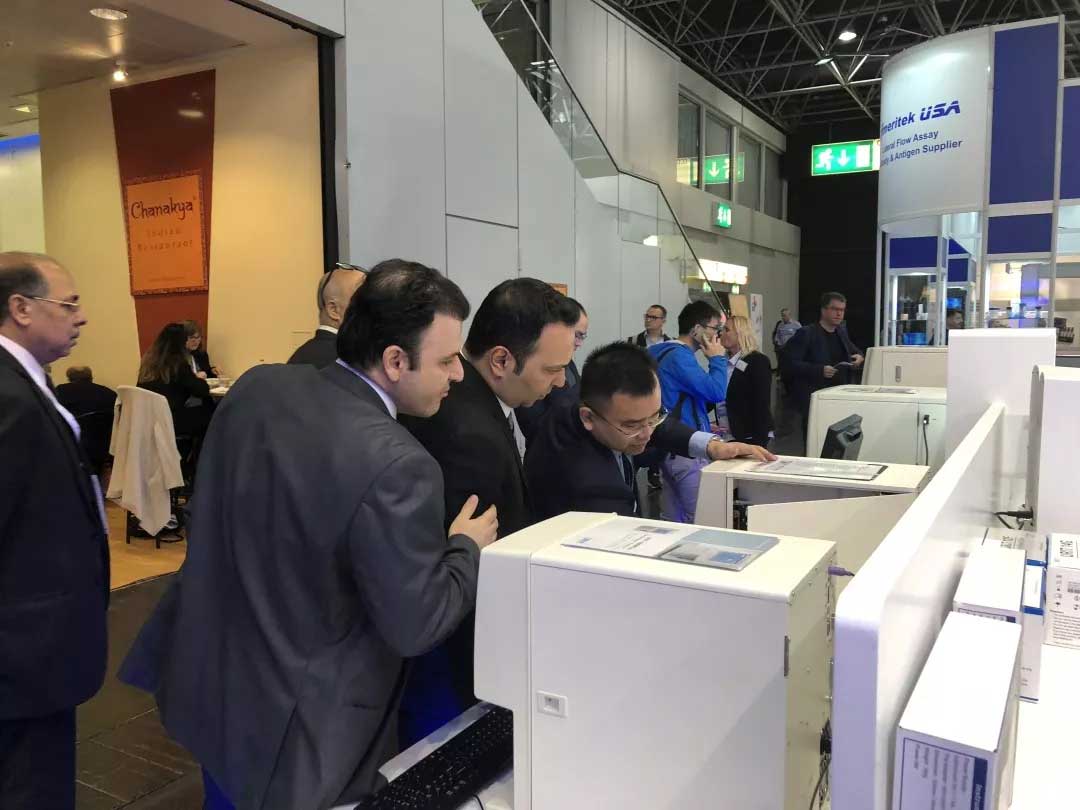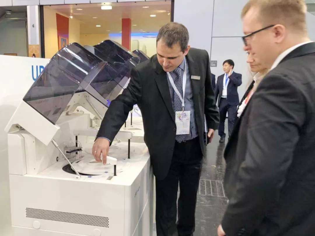 展會上,首次亮相歐洲舞台的(de)US-2000係列模塊化全自(zì)動尿液分析流水(shuǐ)線,作為尿液分析與人工智能識別技術相融合的(de)全新(xīn)突破,將尿液有(yǒu)形成分分析速度提升到240測試/小時,完美解(jiě)決歐美高端市(shì)場集中化實驗室大批量樣本的處理效(xiào)率問題。展會第一天就(jiù)有德國,意大利,以色列等國的經銷商赴約洽談合作。