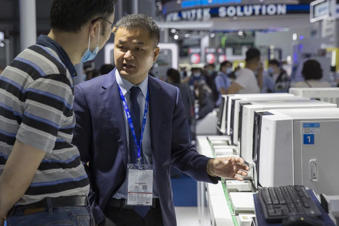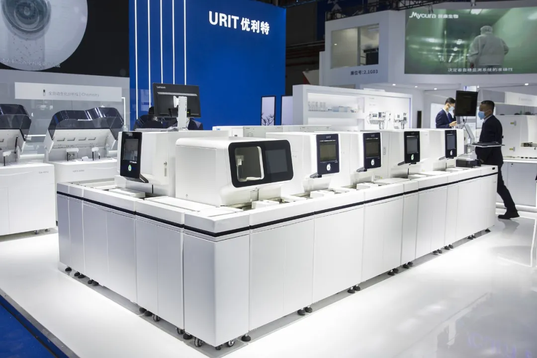 2021年,優利特(tè)多款全自動生化(huà)分析儀入選(xuǎn)第七批優秀國產醫療設備遴選,白求恩精神研究會檢(jiǎn)驗醫學分會會長董(dǒng)書魁先生蒞臨優利(lì)特(tè)展台參觀指(zhǐ)導。