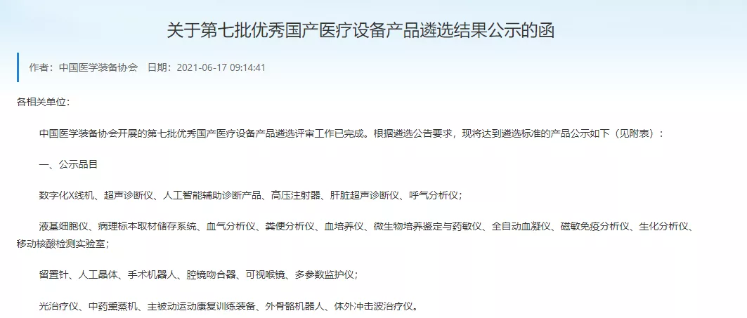 優秀國產醫療設備遴選工作評選標準嚴格,過程規範,從2014年5月(yuè)啟動至今,一直是(shì)國內醫療器械領域的焦點話題,遴選結果受到國內各界人士(shì)的高度重視和期待,也成為了(le)各級醫療機構選購產品(pǐn)的風向標。