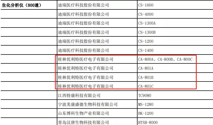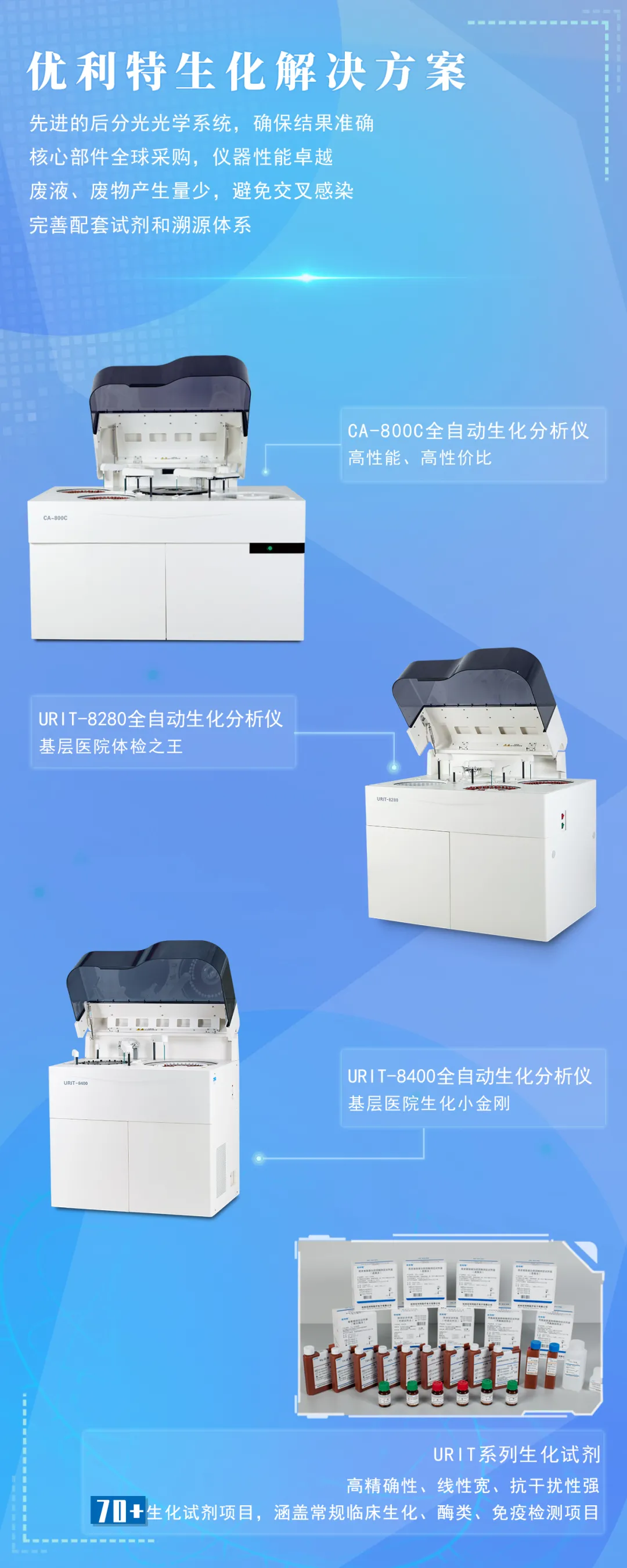 近日,中國醫學裝備協會最新發布了《關於第(dì)七批優秀國產醫療設備產品遴選結果公(gōng)示的函》的通知,公示了達到遴選標準的產品,優利特申(shēn)報的12個型號全自(zì)動生化分析(xī)儀全部上榜,成功入圍率達100%。
